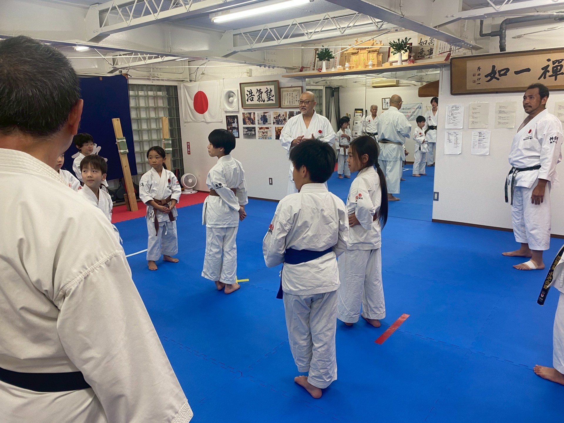 椎名先生の特別稽古 2025/10/30 令和7年10月29日(水)午後6時から椎名先生をお迎えして特別稽古を行いました。平安初段から平安五段まで、技の意味と体の使い方腰の使い方そして軸足の回転など普段ぜんぜん意識してこなかった細部まで丁寧に指導していただきました。キッズクラスから一般部まで中身の濃い稽古内容でした。